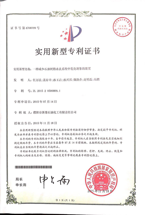 實(shí)用新型專利證書